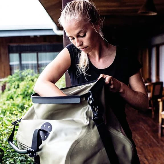La borsa da viaggio Ortlieb Rack-Pack è utile in molte situazioni, e le dimensioni regolabili consentono di portare tutto ciò di cui abbiamo bisogno per il viaggio o fare sport. Per le rotte in bicicletta può essere trasportata su un rimorchio o combinata con le bisacce Back-Roller o Front-Roller sia della gamma Classic che della gamma Plus. Anche Rack-Pack si comporta benissimo sulla moto e, quando si parcheggia, possiamo portare la sacca sia dai due manici che appesa alla spalla mediante la fascia a tracolla imbottita.