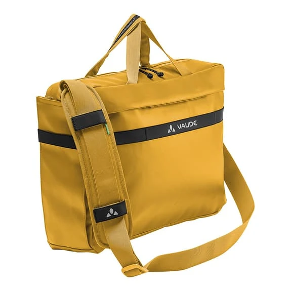 La borsa Vaude Mineo Commuter, con una capacità di 17 litri, è una valigia e una borsa in un unico prodotto. Può essere agganciata e sganciata dal portapacchi della bicicletta in un solo passaggio, utilizzando un binario Plug and Ride. È ideale per gli spostamenti in bicicletta ed è comoda da trasportare anche a piedi, riponendo il binario nell’apposito scomparto laterale. Dispone inoltre di sofisticati scomparti. Il telefono e altri piccoli oggetti possono essere riposti al sicuro nello scomparto posteriore con cerniera, giornali, blocchi per appunti e snack possono essere riposti rapidamente nello scomparto anteriore e l’ampio scomparto principale può ospitare facilmente un computer portatile da 15,6 pollici, documenti e persino un’intera cartella. Una tasca interna per bottiglie/borraccia protegge le tue bevande. Una catena multifunzionale stampata con elementi riflettenti può essere utilizzata per aggiungere altre attrezzature alla borsa o per fissarla a una borsa da viaggio. Il robusto materiale, certificato bluesign, è privo di PVC, repellente allo sporco e impermeabile. In qualità di membro dell’organizzazione indipendente Fair Wear con status di leadership, Vaude si impegna a garantire condizioni di lavoro e salari equi nella produzione dei suoi prodotti. L’etichetta Vaude Green Shape identifica che i prodotti sono funzionali ed ecologici e sono realizzati con materiali sostenibili. Inoltre, questo prodotto è neutrale dal punto di vista climatico, poiché tutte le emissioni derivanti dai materiali, dalla produzione e dalla spedizione sono state sistematicamente analizzate da Vaude e ridotte.