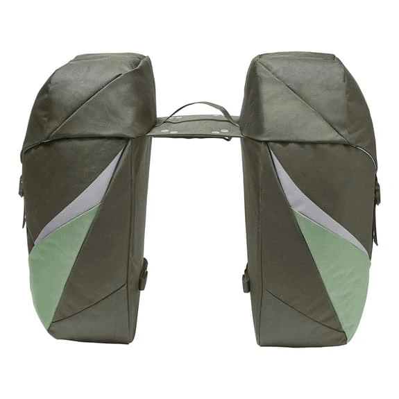 Le borse Vaude TwinRoadster, con una capacità totale di 52 litri, sono progettate per i tour in bicicletta e le escursioni. I loro spaziosi scomparti ti permetteranno di riporre in sicurezza l’attrezzatura e tutti gli oggetti necessari per la tua avventura. Il design consente anche di utilizzarle come borse a mano per raggiungere la destinazione. Sono facili da montare e si adattano a un’ampia varietà di sistemi di fissaggio. Il loro tessuto resistente proteggerà i tuoi oggetti da graffi e urti e la loro copertura impermeabile ti permetterà di affrontare gli elementi con fiducia. La finitura Eco Finish è al 100% priva di fluorocarburi. L’etichetta Vaude Green Shape identifica che i prodotti sono funzionali ed ecologici e sono realizzati con materiali sostenibili.