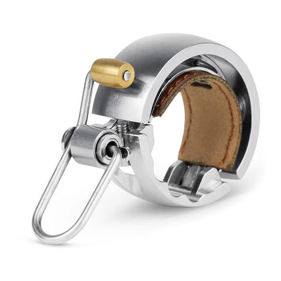 Il campanello Knog Oi Luxe Small si adatta alle barre da 22.2 mm Con un dinger in ottone meccanizzato CNC il colpo del campanello è secco e veloce, permettendo un buon equilibrio del volume e lunghezza del suono.