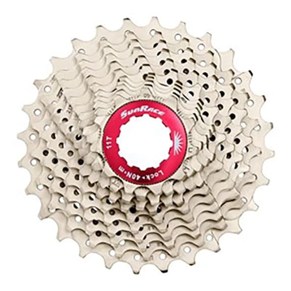 Pacco pignoni SunRace 11V 11-28 alluminio metallizzato rosso.