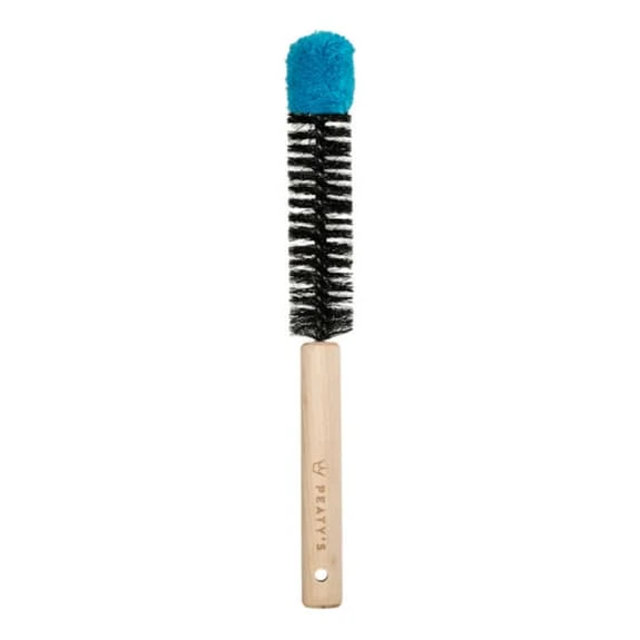 La spazzola Peaty’s Detail è perfetta per gli spazi ristretti difficili da pulire, come le maglie della sospensione, i binari della sella, i mozzi e altro ancora. Il nucleo rigida è rivestito per evitare danni, mentre la punta di cotone super morbida e spessa impedisce anche che l’estremità dell’anima graffi la vernice.