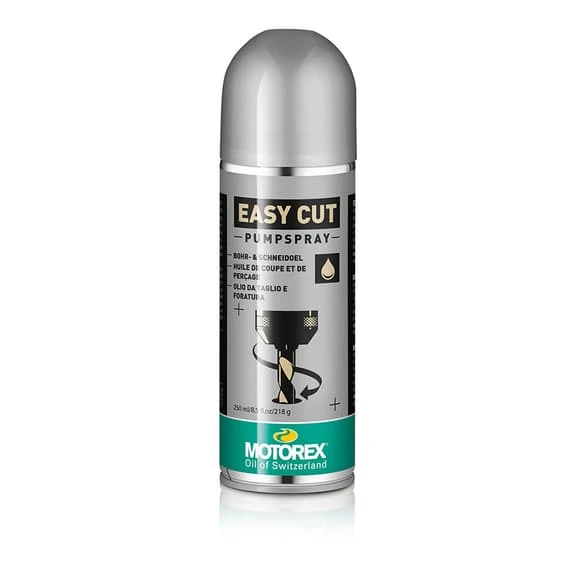 Lo spray Motorex Easy Cut Aerosol 250 ml riduce l’usura e prolunga la vita degli attrezzi. Proprietà di raffreddamento e lubrificazione ottimali.